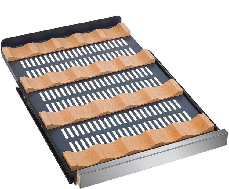 Allavino's revolutionary new metal shelves are strong enough to prevent sagging, yet thin enough to maximize your available storage space. These shelves glide out smoothly on ball-bearing tracks, and feature wood slats that cradle your bottles and prevent harmful vibration from affecting your wine.