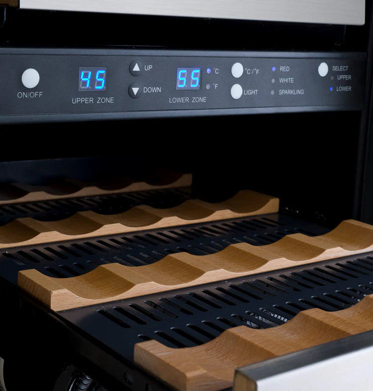 Allavino's exclusive FlexCount wine racking technology cradles bottles and is designed with vibration-reduction technology to protect aging wines. This unique shelving design allows for ultimate flexibility and versatility when it comes to storing a variety of bottle sizes and shapes. Easy gliding shelves allow for easy access to your collection without disrupting the delicate wine maturation process.