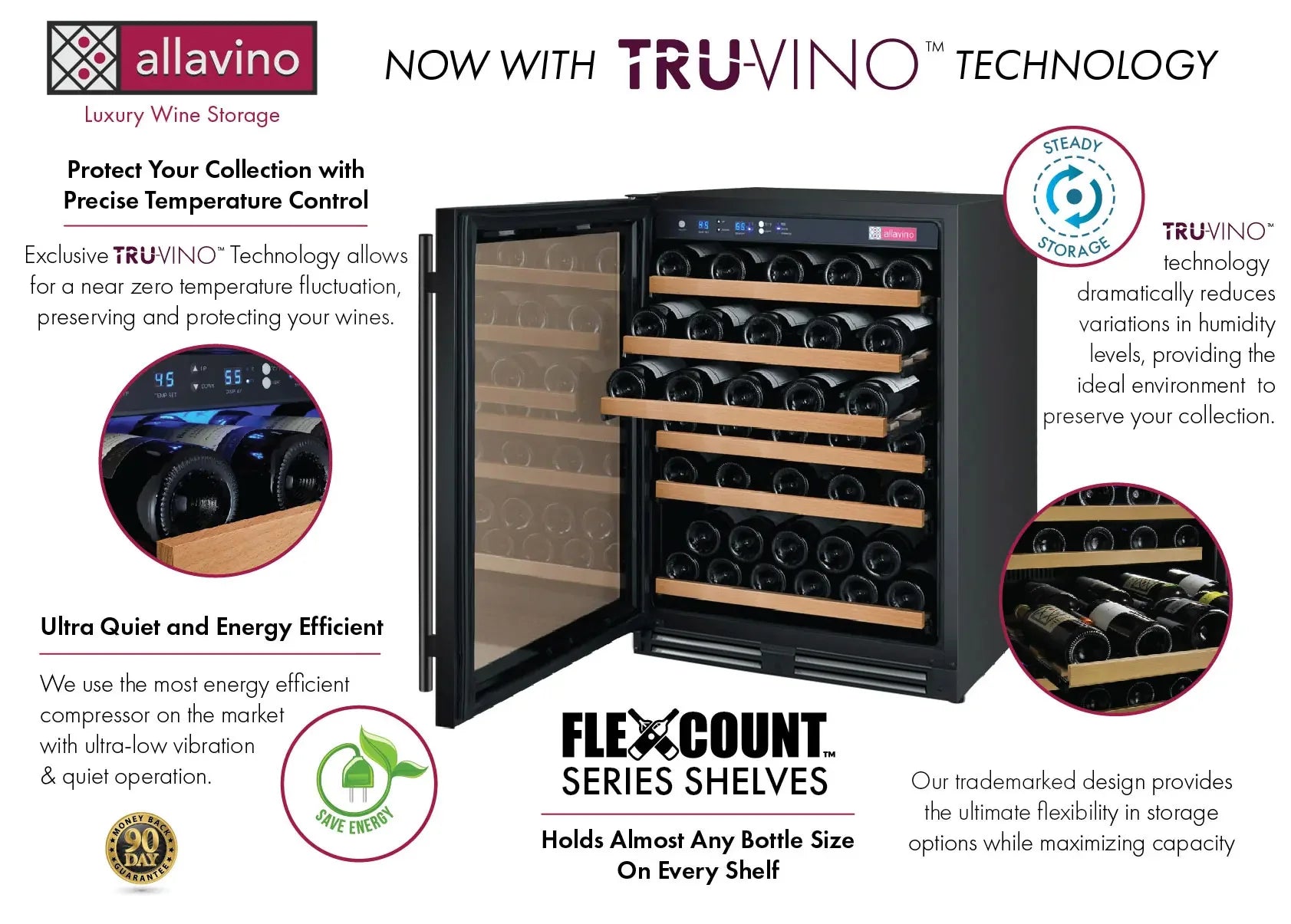Allavino 24" Wide FlexCount II Tru-Vino 56 Bottle Single or Dual Zone Black Wine Refrigerator