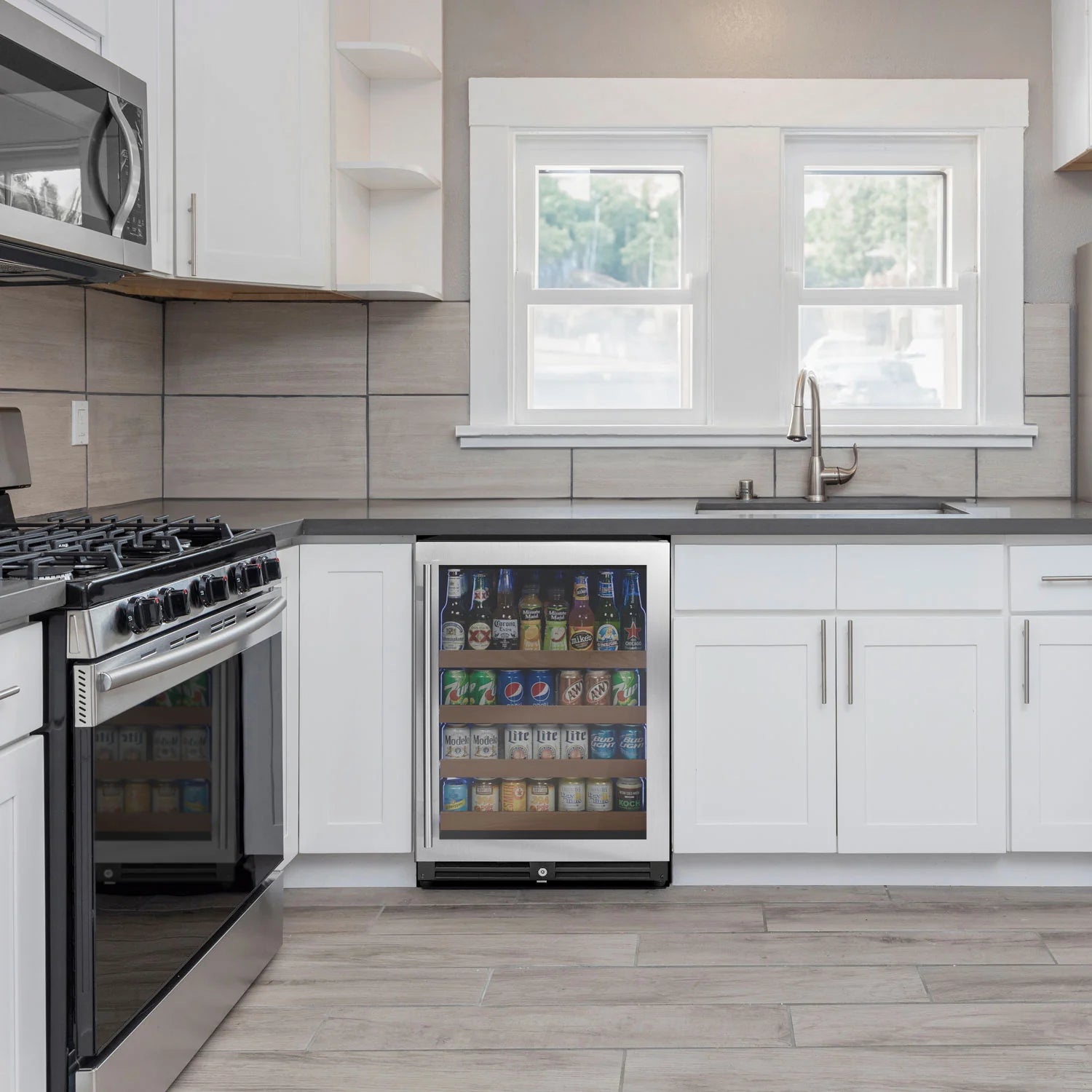 The seamless stainless steel door showcases an elegant and clean profile while also resisting visible fingerprints. The tinted LowE glass protects your beverages from the harmful effects of UV light.