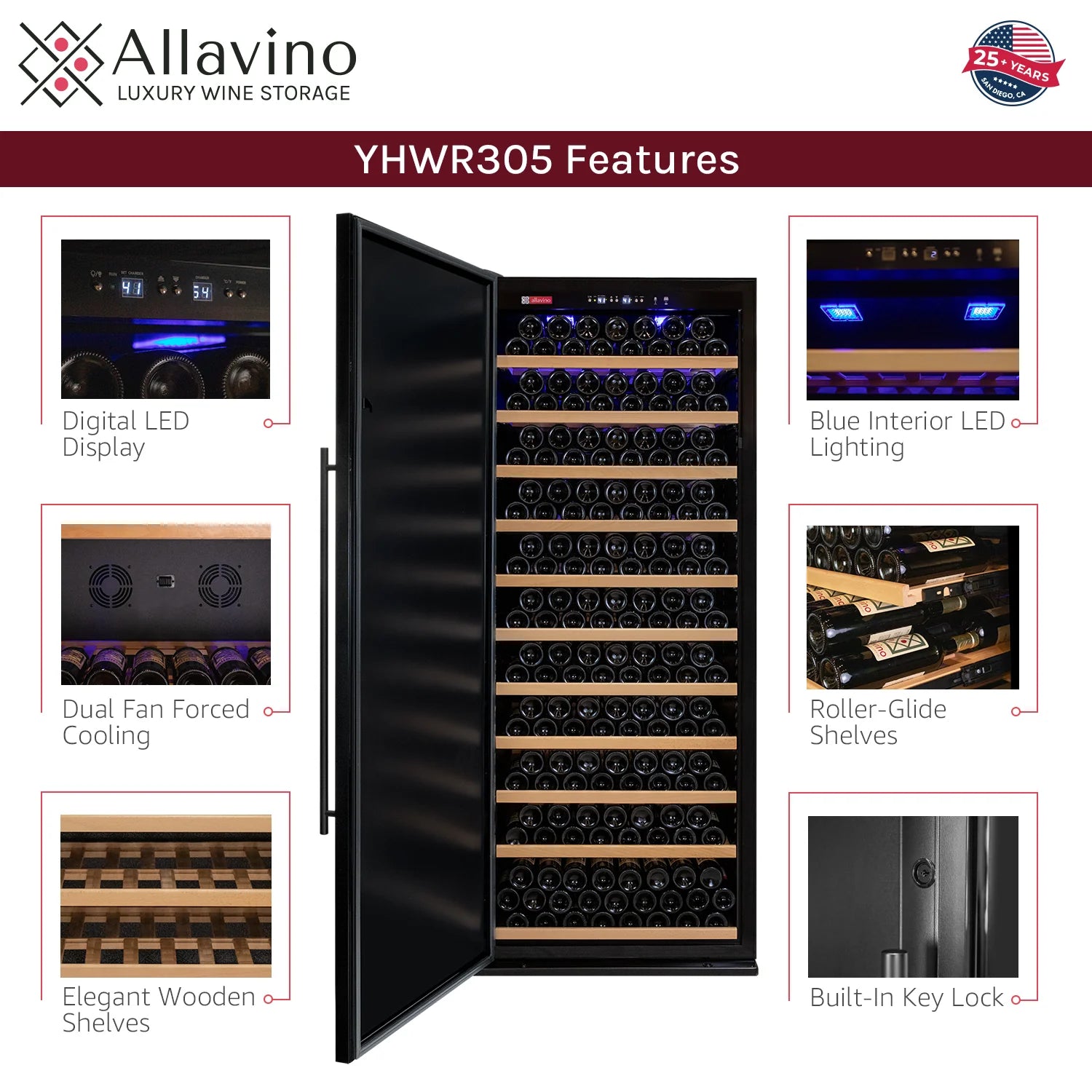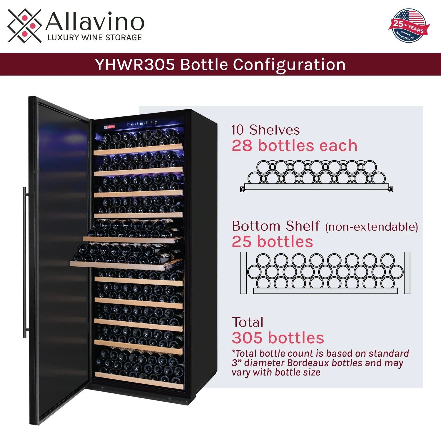 The Allavino Vite II YHWR305-1SR20 Wine Refrigerator with Tru-Vino Temperature Control Technology is a stylish freestanding unit that can hold up to 277 bottles. Protect and preserve your wine collection with the latest innovation in wine storage technology by Allavino. Easily set your desired temperature with the easy-to-use digital control panel and trust in Tru-Vino Temperature Control Technology to protect your collection through consistent temperature maintenance. This wine refrigerator features sturdy hardwood shelves that can be easily adjusted to fit the needs of your collection. The smooth gliding shelves allow for convenient access to every bottle without disrupting the delicate wine maturation process.