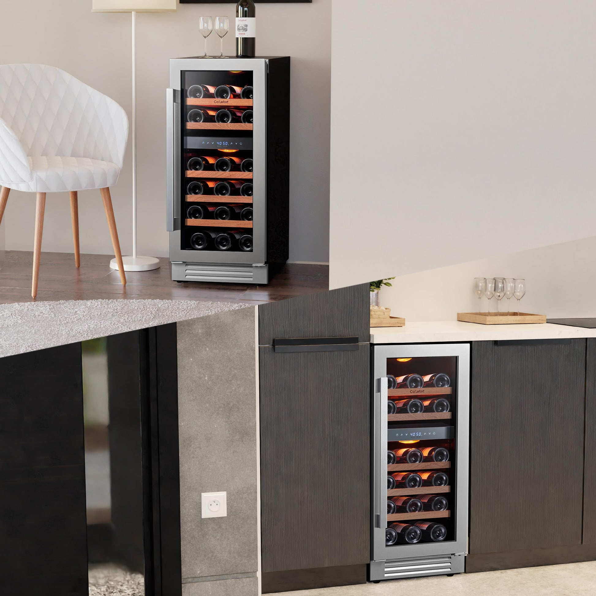 Ca'Lefort 15 Inch Wine Fridge, 28 Bottle Wine Cooler Refrigerator, 40-65°F Wine Refrigerator Glass Door, 3 LED Dual Zone Wine Fridge, Built-in or Freestanding Fridge for Home/Bar/Kitchen (3.0 cu.ft)