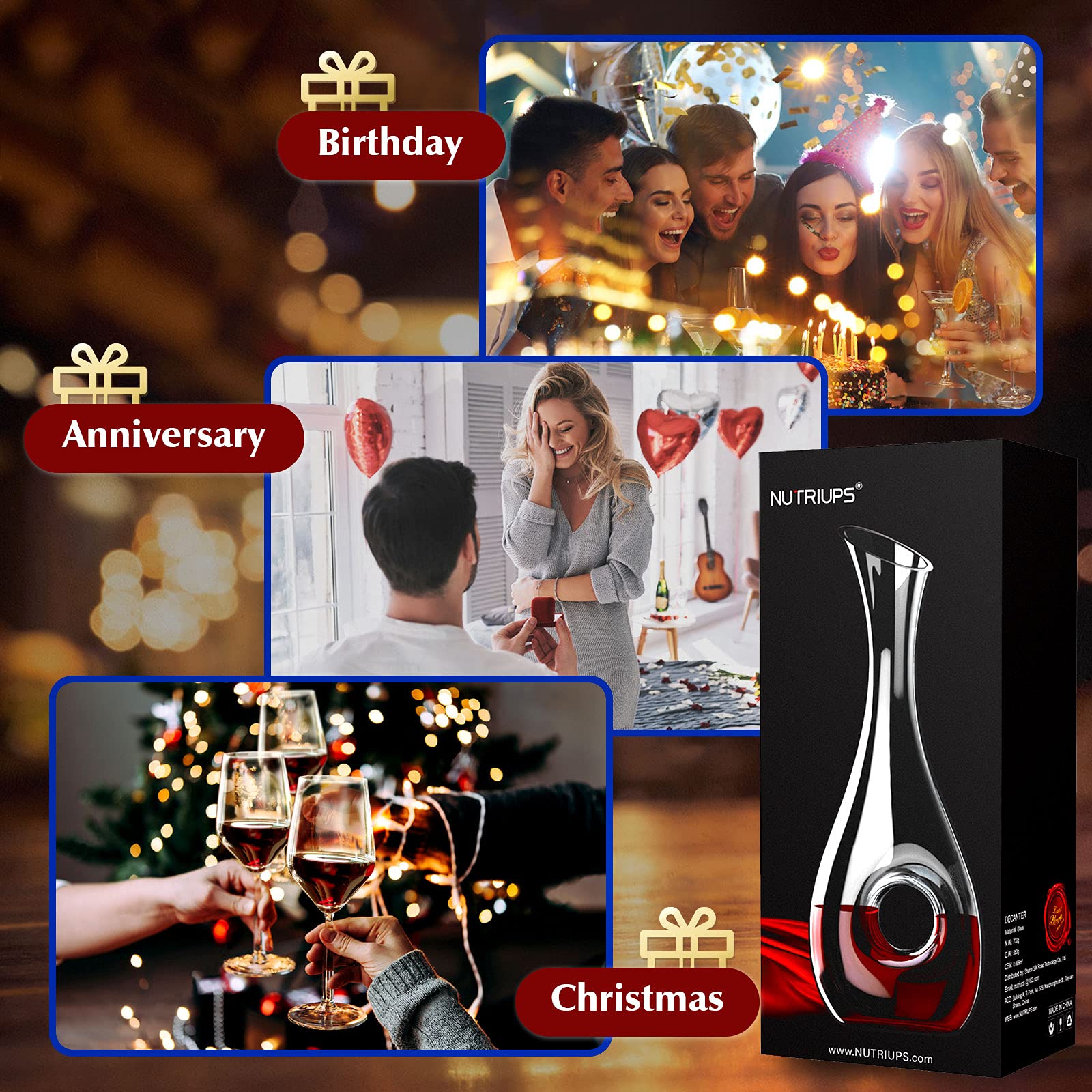 - 【Perfect Present for Wine Enthusiasts】NUTRIUPS wine decanter has specially-designed GIFT BOX intended to create an instant “WOW” feeling as a gift. Impress your family or friends with this wine decanter with stopper on Christmas, birthday, wedding, anniversary, Valentine's Day, housewarming, etc. Buy it, Gift it, Love it.