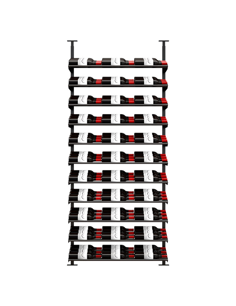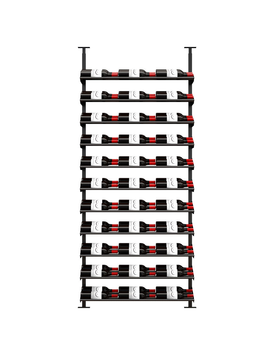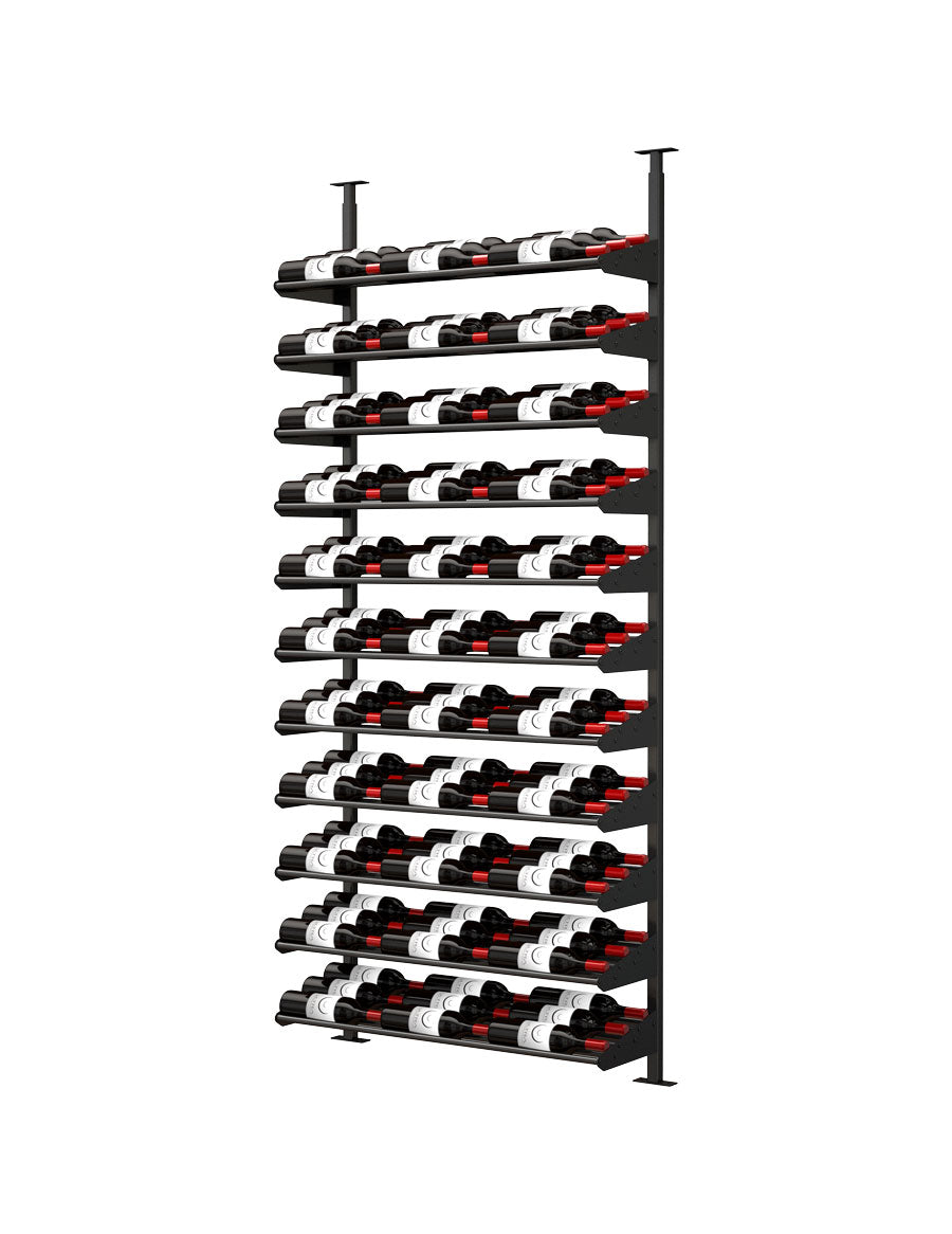 The Showcase Standard Cascading Kit utilizes the industry-first Cascading Row, which offers a unique storage configuration that staggers your wine collection and allows all bottles to be recognized at a glance. With this racking style, your fine wine will be held securely in place on high-quality, precision-cut steel rods, while still allowing easy access to enjoy any bottle. Available in 3 foot sections and in two standard bottle depths (double deep, triple deep), the Cascading Kit looks beautiful as a standalone or as a complimentary racking style to our specially curated Exhibition Kit.