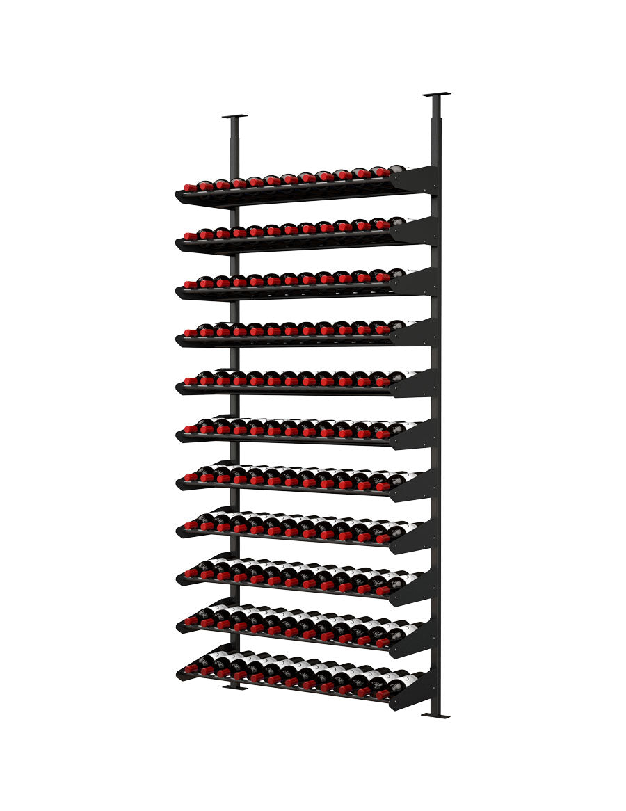 The Showcase Standard Cork-Out Kit is an industry-first configuration that achieves maximized storage while keeping aesthetics at the forefront. This wine racking style optimizes easy storage while creating a sleek, minimalist look. With wine bottles securely cradled at the neck, body, and heel. By configuring bottles with the cork facing outward, this racking display makes it simple to pull and pour.