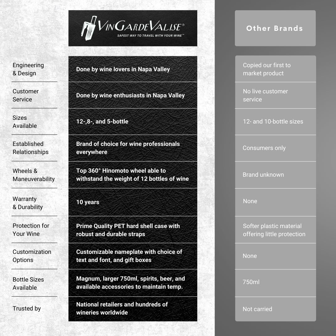 • 📌 TRUSTED & VOTED #1 – The VinGardeValise wine suitcases are the preferred choice of winemakers in over 500 winery tasting rooms and are trusted by luxury retailers, fine department stores, and specialty shops for their quality and reputation. Recognized as the Best in Class Luxury Wine & Spirits Travel Luggage, VinGardeValise has earned national acclaim in over 100 top publications, including Forbes, Condé Nast Traveler, CNN.com, Food & Wine, Wall Street Journal, Oprah Daily, and USA Today.